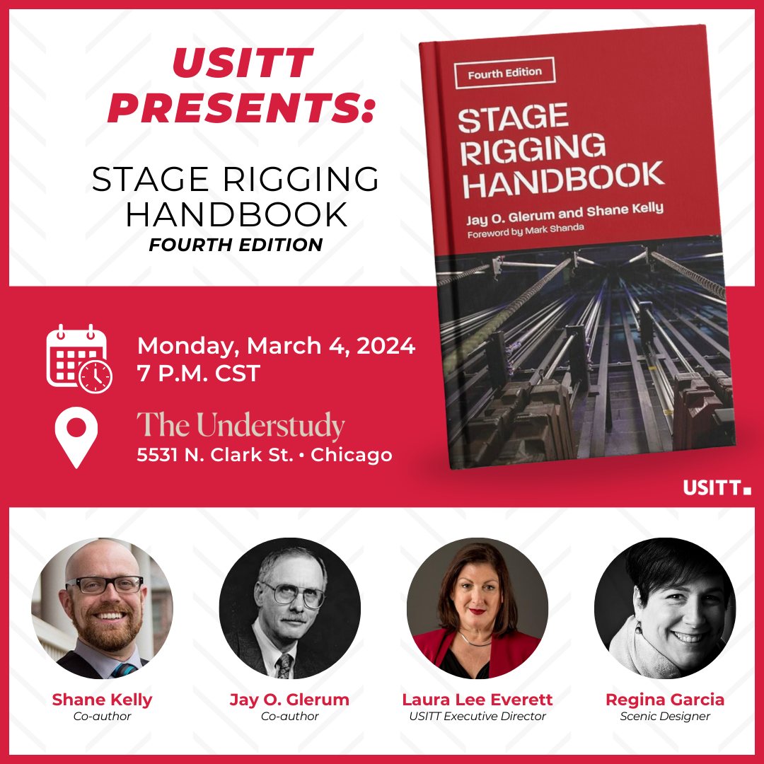 FreeJoin us for this special event on March 4, at The Understudy in Chicago! USITT Executive Director Laura Lee Everett will sit down with co-author Shane Kelly and scenic designer Regina García to discuss the latest edition of the Stage Rigging Handbook, working in the industry, and the impact Jay O. Glerum’s work has had on the world of theatrical stage rigging over the last several decades.