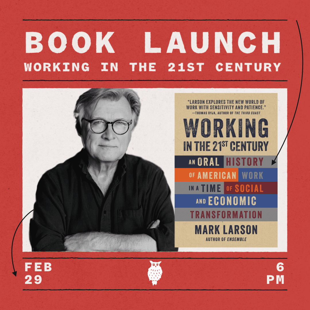 Why do we show up to the jobs we’ve chosen? Or why don’t we? How has the upheaval of the past few years changed our experience of work? To coincide with the fiftieth anniversary of Studs Terkel’s legendary Working, we celebrate the release of Mark Larson’s Working in the 21st Century: An Oral History of American Work in a Time of Social and Economic Transformation.